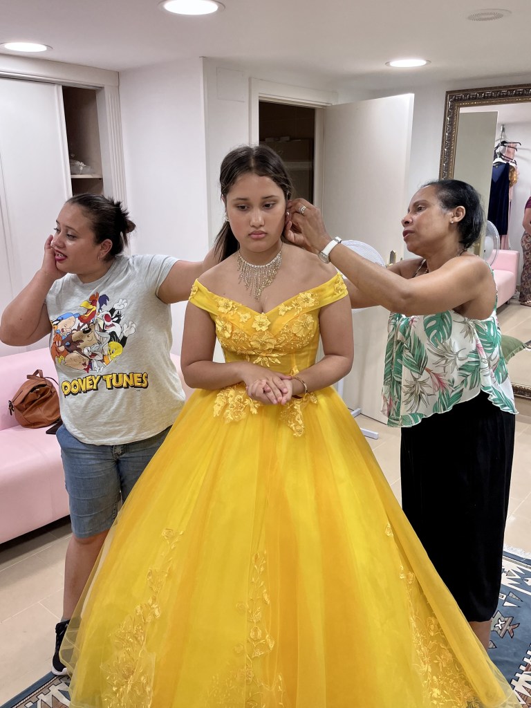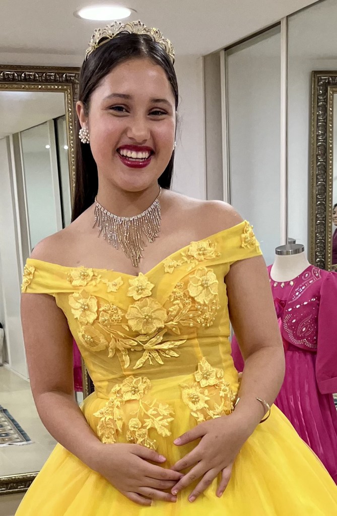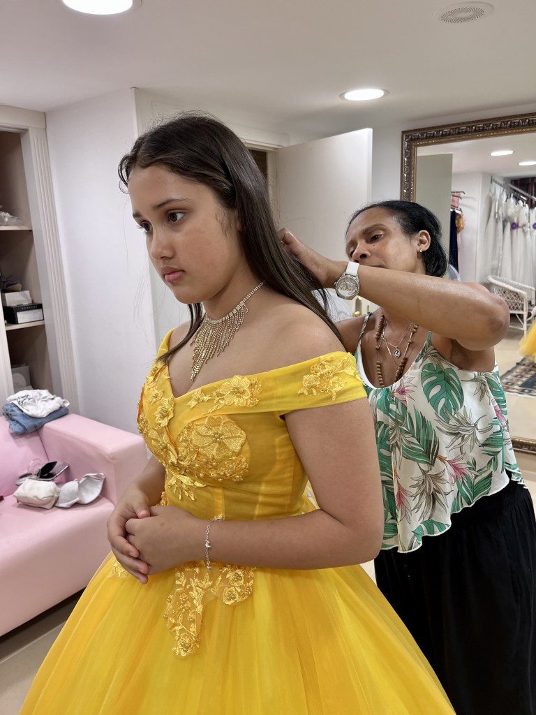 La asociacion Los pequeños corazones de cuba de Irun, recibe a stefania de origen colombiana, para probarse un vestido de quinceañera en nuestra tienda SPOIR Royal Magnificat.