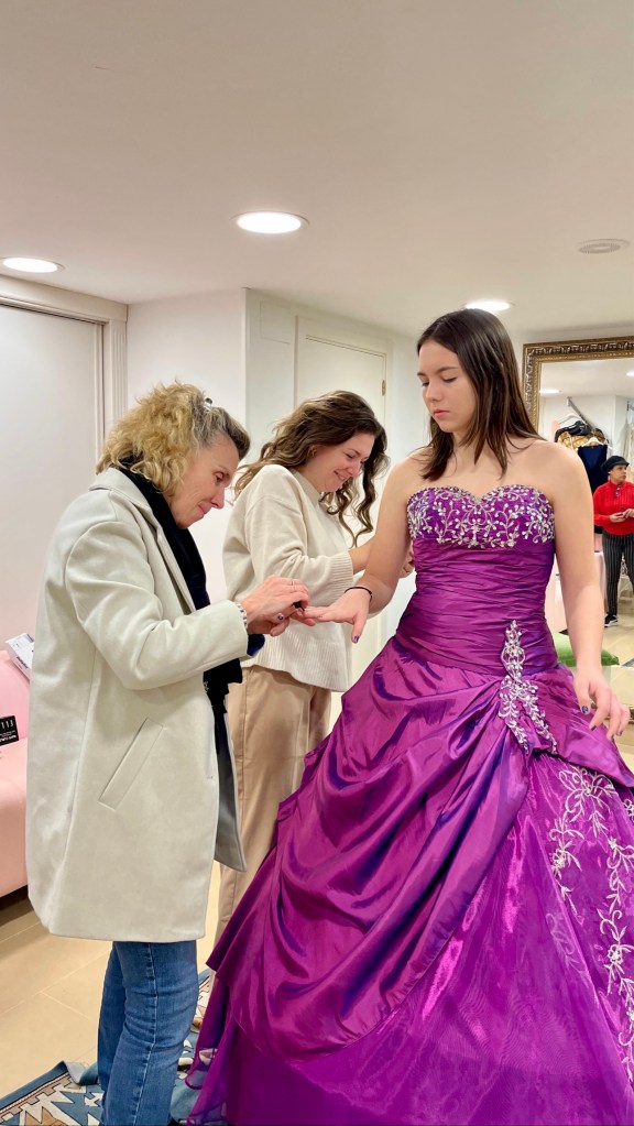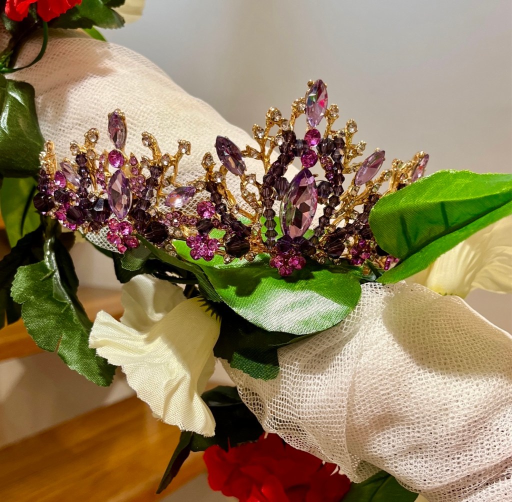 Hoy en la tienda ROYAL MAGNIFICAT de Irún, presentamos el magnífico vestido de princesa morado con sus galas y su espléndida corona.